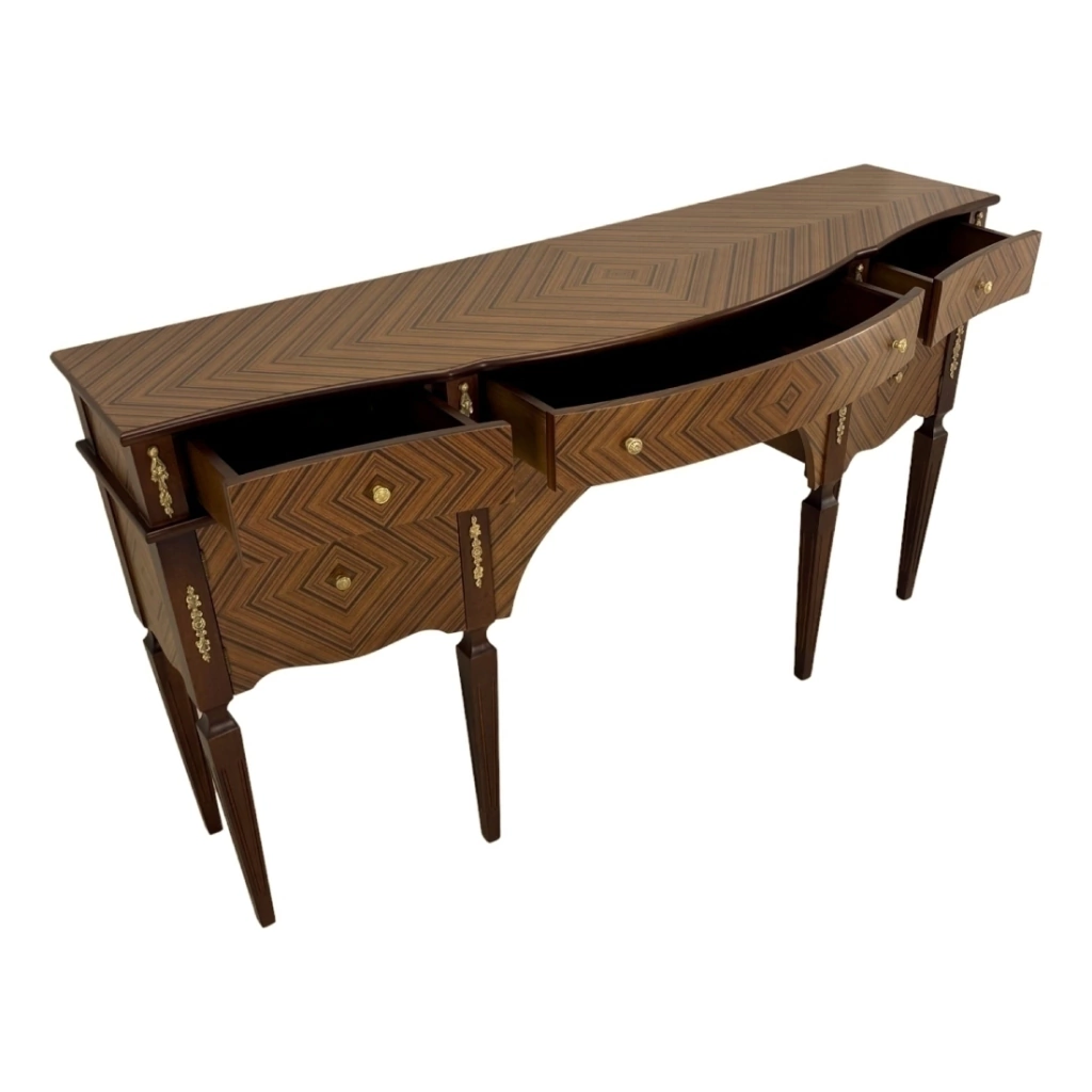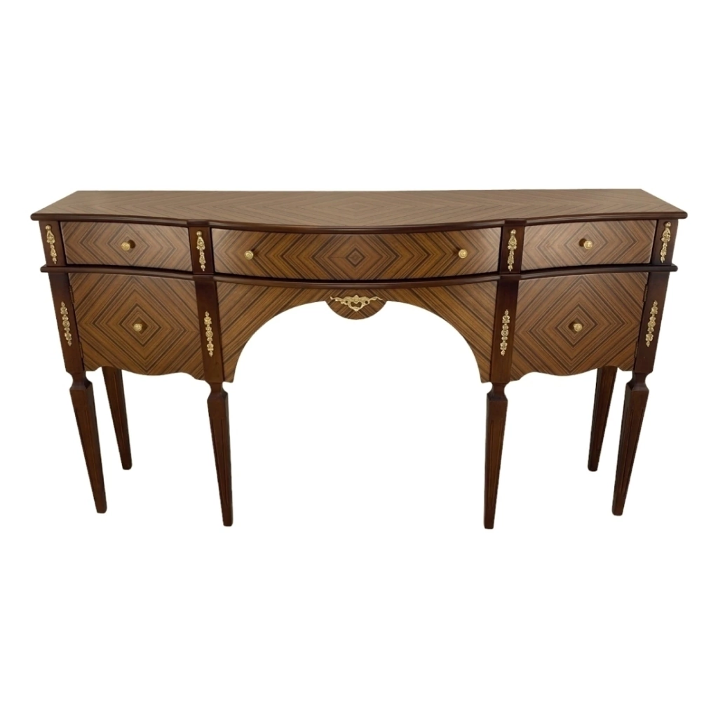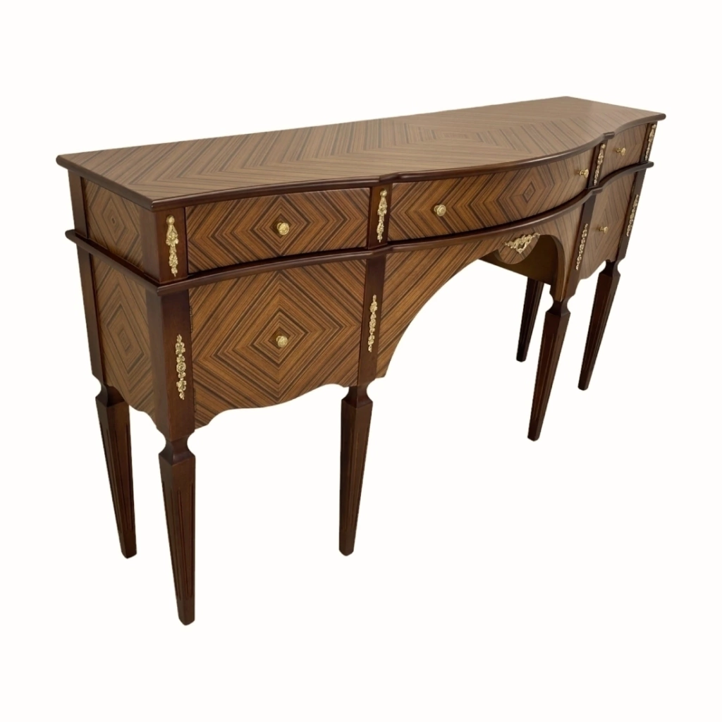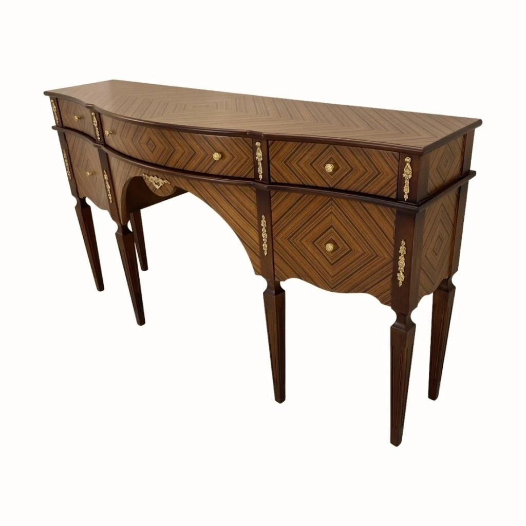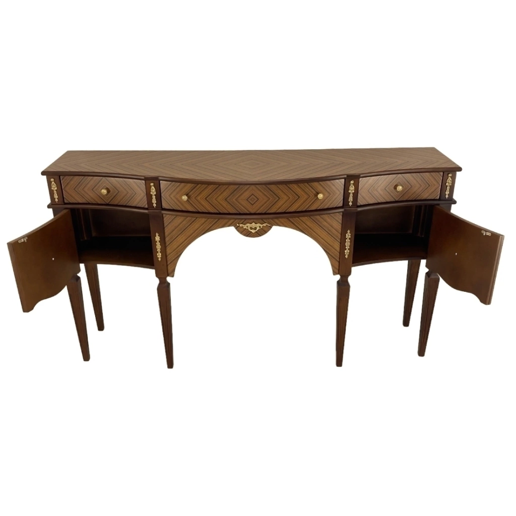 Aparador com marchetaria feita a mão lamina de palissandro. Ornamento em metal dourado.