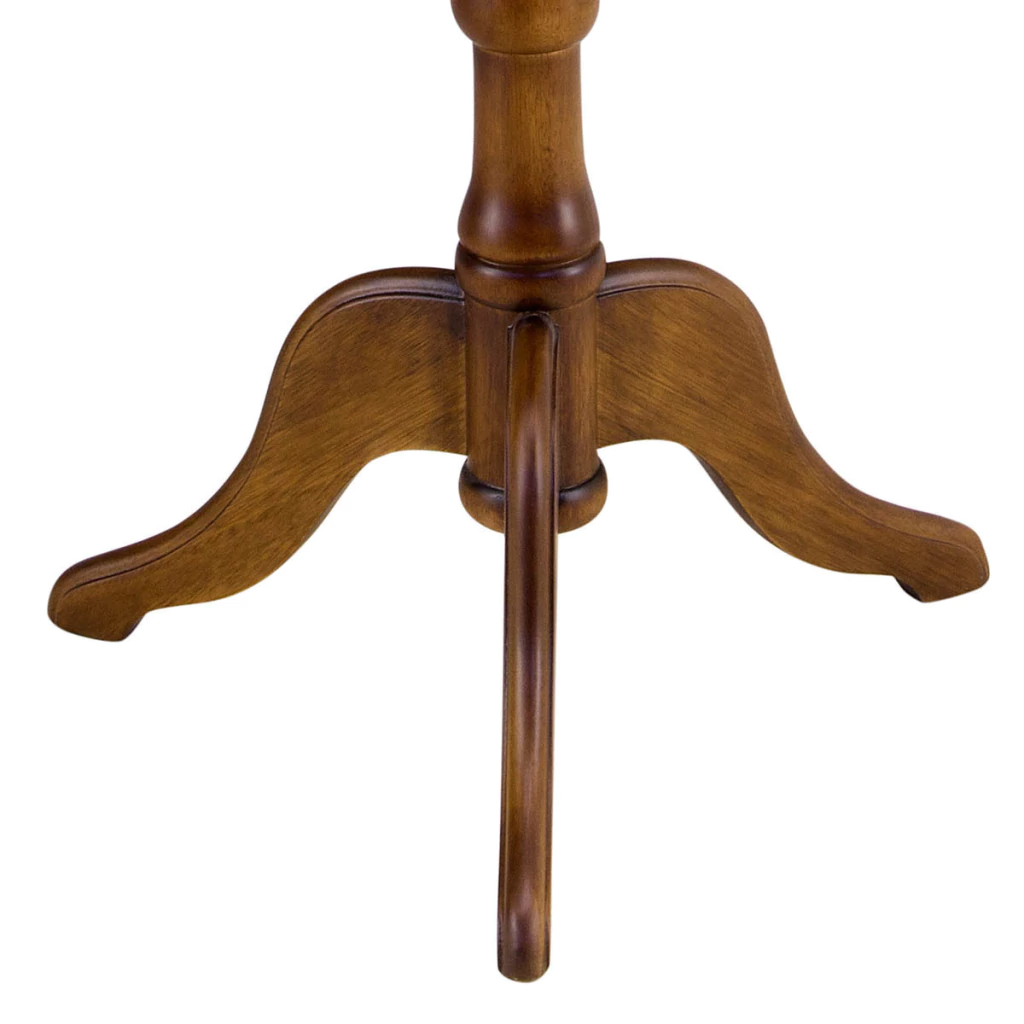 Mesa de apoio / lateral redonda, conhecido também como velador, estrutura em madeira maciça de jequitibá tingida de imbuia. A parte da marchetaria é feita com radica natural de imbuia.